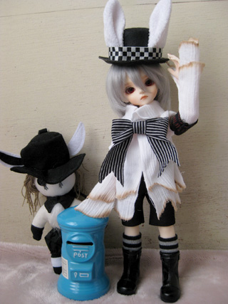 ややフライングですが2011年の干支にちなんでウサギレイくんです。基本レイくんは白黒服なので春ドルパで買ったウサギ帽子が今回の服にも合って嬉しい。