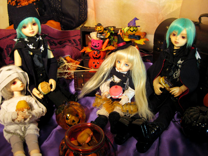大きい子は冬っぽい服に着せ変えたのですがこの二人はハロウィンのままでした;