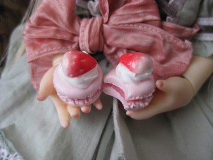 見栄えを考えて、通常のマカロンよりちょい大きめのイメージで頼んだのですが、イチゴをトッピングしてくれたのでなんとなくいい感じの大きさになりました。イチゴがジャストサイズw