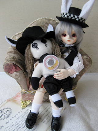 ドルパでウサギ帽子を買ったので、レイくんに被せてアリスと一緒に撮りました。