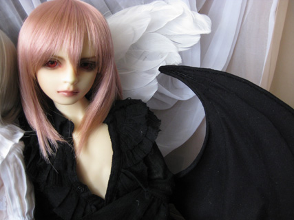 先日制作した悪魔羽根を使って、天使ルシと鎖炎で2ショ撮りました。
